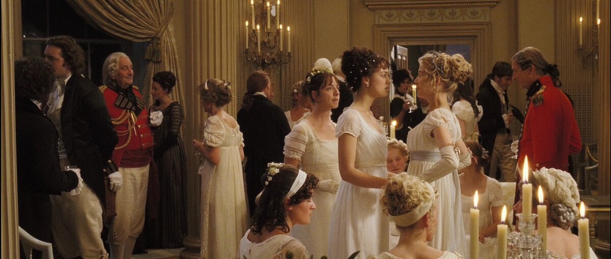 Сейчас, после просмотра разных экранизаций ГиП и РиЧ мне в глаза бросаются их наряды. Талия здесь завышена, но не совсем под грудью, как это привычно видеть в фильмах и сериалах показывающих ту эпоху. Но при первом просмотре я про это не знала и мне глаза не резало. Вообще подозреваю, что такой фасон выбран из-за того, что платья совсем под грудь не смотрелись бы на Кире Найтли. Если присмотреться, то например у Джейн и некоторых других персонажей наряды более близкие к привычным.Вообще я думаю, что возможно они взяли другое время, более раннее(говорят там 1797 год, когда роман был написан а не 1813, когда был издан), не изучала историю костюмов той эпохи, но в самом фильме у Керолайн Бингли, которая должна одеваться по последней моде, платье как раз-таки подходящего фасона. Хотя я немного полистала информацию о костюмах тех лет и не нашла подобных платьев. И иногда и Лиззи поднимают талию но все равно не так высоко, поэтому думаю дело все таки в особенностях фигуры.