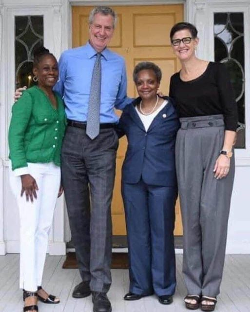 Просто фото, просто для информации. На фотографии Мэр Нью-Йорка Билл де Блазио и мэр Чикаго Лори Лайтфут со своими женами. Милые, правда?