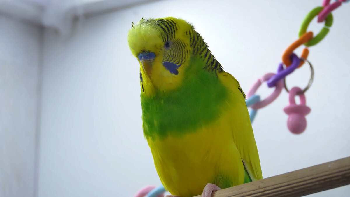 Ксюша была ручной птичкой, частенько прилетала посидеть в волосах или на руках, наслаждаясь вниманием. Ей нравилось сидеть на занавесках, монотонно раскачиваясь, словно на качелях.