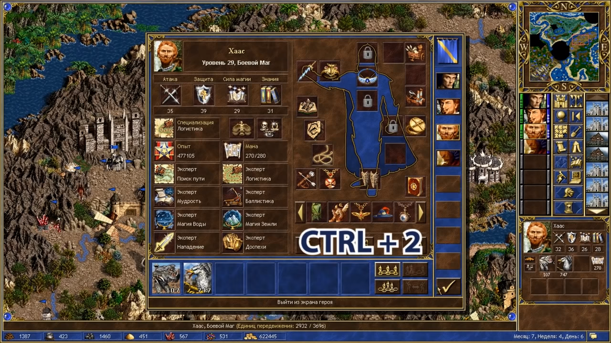 Обращаю ваше внимание, что это работает не только в гарнизоне, или окне героя, но и на боковой панели, на карте приключений, что продолжает экономить нам время.