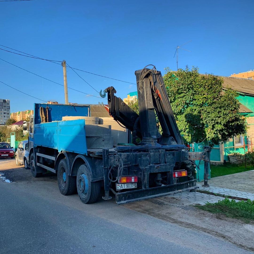Канализация для дома или дачи под ключ. На данном обьекте уже была действующая канализация, которую смонтировали лет этак 25 назад. Честно говоря я впервые видел асбестово-цементные трубы в деле. Может раньше не было такого выбора, вот и прокладывали тем, что было. Проблема в том, что эти трубы диаметром 250мм, и нужно собрать такую конструкцию, чтобы в итоге получился переход на 110мм, т.к. в 110 трубах жидкость не застаивается и лучше проходит. Да и поворотов на такие трубы не существует в природе. Поэтому было принято решение собрать матрешку из переходников, которые позволили перейти на 110 диаметр стандартной канализационной трубы. Было спланирован монтаж канализации-септика из двух колодцев по три метровых кольца. Были доставлены шесть колец диаметром 1м. для запланированного монтажа канализации загородного дома. Вся проблема была в том, что манипулятор ввиду особенностей расположения участка и дома не смог выгрузить материал непосредственно в месте копки , поэтому нам пришлось