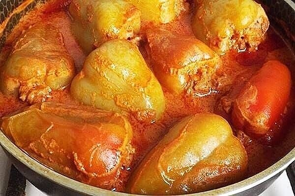Доброго дня дорогие мои читатели. С вами баба Света с очередным рецептиком. Кто не любит рис ,но очень любит фаршированные перцы?? Этот рецепт именно для вас. Ингредиенты: Болгарский перец (8 шт. ) Говяжий фарш (300 г ) Свиной фарш (200 г ) Помидор( 3 шт. ) Красный перец (1 щепотка. ) Зеленый лук (1 пуч.) Чеснок (2 зуб.) Хмели-сунели по вкусу Кинза (1 пуч.) Сметана( 7 ст. л. ) Пшено (100 г ) Аджика (2 ст. л. ) Томатный соус( 4 ст. л.) СПОСОБ ПРИГОТОВЛЕНИЯ: Пшено промойте до прозрачной воды, залейте кипятком, оставьте на 30 мин, чтобы вышла горечь, после этого воду слейте. Перцы промойте, извлеките семечки. Смешайте оба вида фарша, добавьте нарезанные мелко помидоры, кинзу, зеленый лук, а также все специи и пшено. Посолите, тщательно перемешайте массу. Полученной массой нафаршируйте перцы. Уложите заготовки вплотную в толстостенную кастрюлю. Смешайте сметану, томатный соус, жидкую аджику и залейте этой смесью перцы. Если необходимо, посолите. Поставьте к