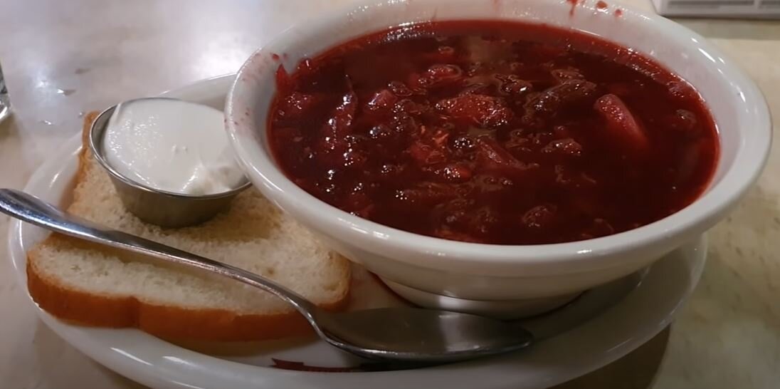 Борщ. Если отличие от нашего домашнего, скажу сразу да. Сколько не заказывал везде он кислит и это без добавления сметаны. Стоимость такой тарелки составляет 8$