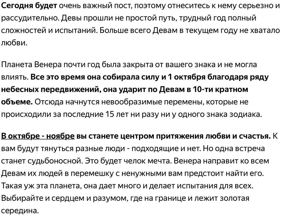 Часто нам очень сильно нужны перемены, но они не идут, а приходят когда мы их не ждем. Девы последнее время сами не свои от постоянной гонки и трудностей. Но все скоро изменится и вы забудете эти трудные месяцы. Дело в том, что осенью произойдет событие, которое полностью изменит вашу жизнь. Вам будет дан шанс всей жизни и вы обязательно станете счастливыми. Резкое и внезапное событие перевернет