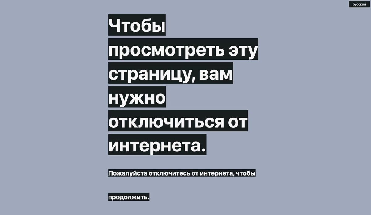 Программист Крис Болин решил разработать страничку, которая работает только в условиях отсутствия подключения. Смысл его творения заключается не в развлечении пользователей, лишенных возможности полистать любимую ленту, а наоборот — программист стремится доказать людям, что иногда полезно уйти в оффлайн и обработать информацию самому. Текст с таким посылом расположился на главной странице сайта. Возможно, кому-то это поможет наконец собраться и закрыть любимые источники бесконечно информации
