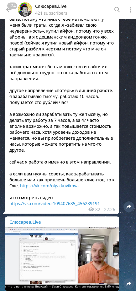 Недавно, если что, я записывал свой опыт по личному зарабатыванию денег, а Оля написала видео-ответочку на 40 минут! Сначала я хотел ускорить и смотреть на 2×, но слишком быстро, пришлось смотреть на полуторной скорости.