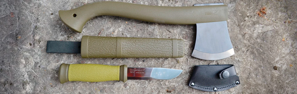 В набор входит: Рукоятка топора выполнена из пластика темно-зеленого цвета. Пластик обеспечивает надежный захват рукояти и хорошо гасит удары при работе топором. Размер топора позволяет с удобством носить его в рюкзаке. Общая длина — 32,2 см, режущая кромка — 11,5 см. Вес - 500 г. В комплекте к топору идет чехол из натуральной кожи с кнопкой-застежкой. Для рукояти выбран темно-зеленый прорезиненный пластик с оливковой текстурированной вставкой, улучшающей захват и контроль во время работы ножом. Нож хранится в жестком пластиковом чехле, который можно подвесить за предусмотренную кожаную петлю. Набор Morakniv Outdoor Kit MG 1-2001 будет полезным туристу, охотнику, путешественнику и станет отличным вариантом для подарка.