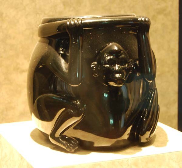 В этом же музее есть еще один интересный экспонат, относящийся к той же эпохе, - это изумительная чаша в виде обезьяны, также изготовленная из обсидиана с применением достаточно высоких технологий: «Качество ее просто совершенно! И дело даже вовсе не в замечательно отполированных мельчайших деталях фигуры обезьяны снаружи сосуда, а в безукоризненном исполнении самого сосуда.