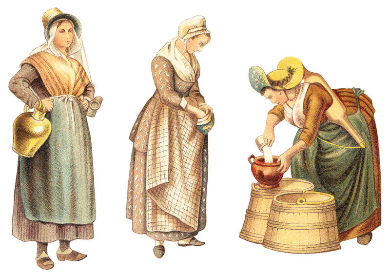 Положение женщины в России было весьма плачевным. Молодые женщины того времени жили затворницами. Они боялись показываться чужим людям, сидели дома, шили и пряли, даже в церковь ходили редко. Честь женщины ставилась под сомнение, если она не жила взаперти. Женщина также не должна была позволять смотреть на себя посторонним. Редко женщинам позволялось общение с друзьями, и то только в том случае, «если эти друзья — совершенные старики и свободны от всякого подозрения». Из забав женщинам позволялось только катание на качелях. У богатых жены не занимались хозяйством, хозяйство у них вели слуги и служанки. Бедная женщина трудилась сама, но, готовя еду, она не могла убить животное, а стояла, например, с курицей и ножом у ворот и просила прохожего зарезать птицу. Это было связано с тем, что с самых древних времен наши предки считали оскверненным мясо животных и птиц, если их убивала женщина, и не употребляли его в пищу. Несмотря на строгое отношение к женам и их затворничество, существовали