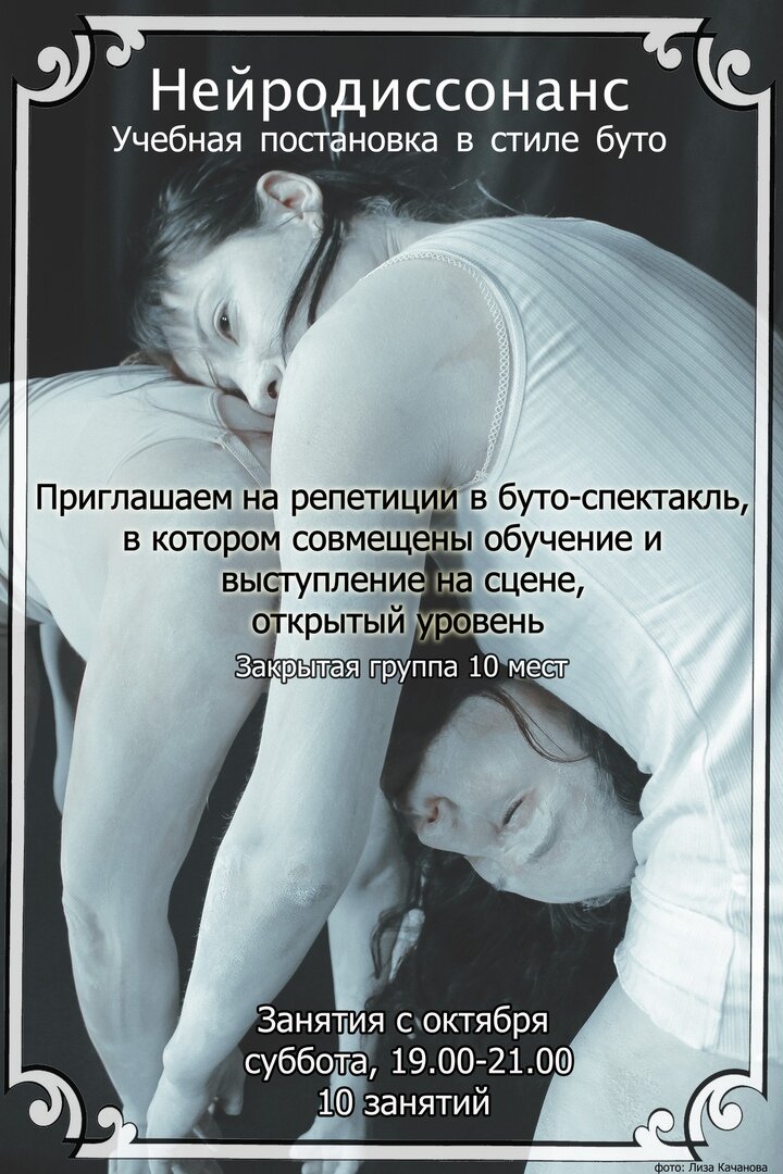 Мы будем исследовать движение, которое свойственно иному телу-живущему в другом мире: с другой гравитацией, в другой среде, имеющим иное мышечно чувство-через такие ассоциации каждый получит опыт бытия инопланетного существа.