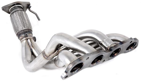 Большая часть потерь на выпуске приходится на выпускной коллектор. В тюнинге его заменяют на так называемый «паук»- он отличается формой и порядком соединения приемных труб с выпускными окнами. «Пауки» бывают «короткие» и «длинные» (два У). Если взять 4-цилиндровый двигатель, то схема труб «длинного» строится по формуле 4-2-1, а «короткого» 4-1. К «длинному» пауку положена соединительная муфта 2->1, у «короткого» более сложная геометрия.