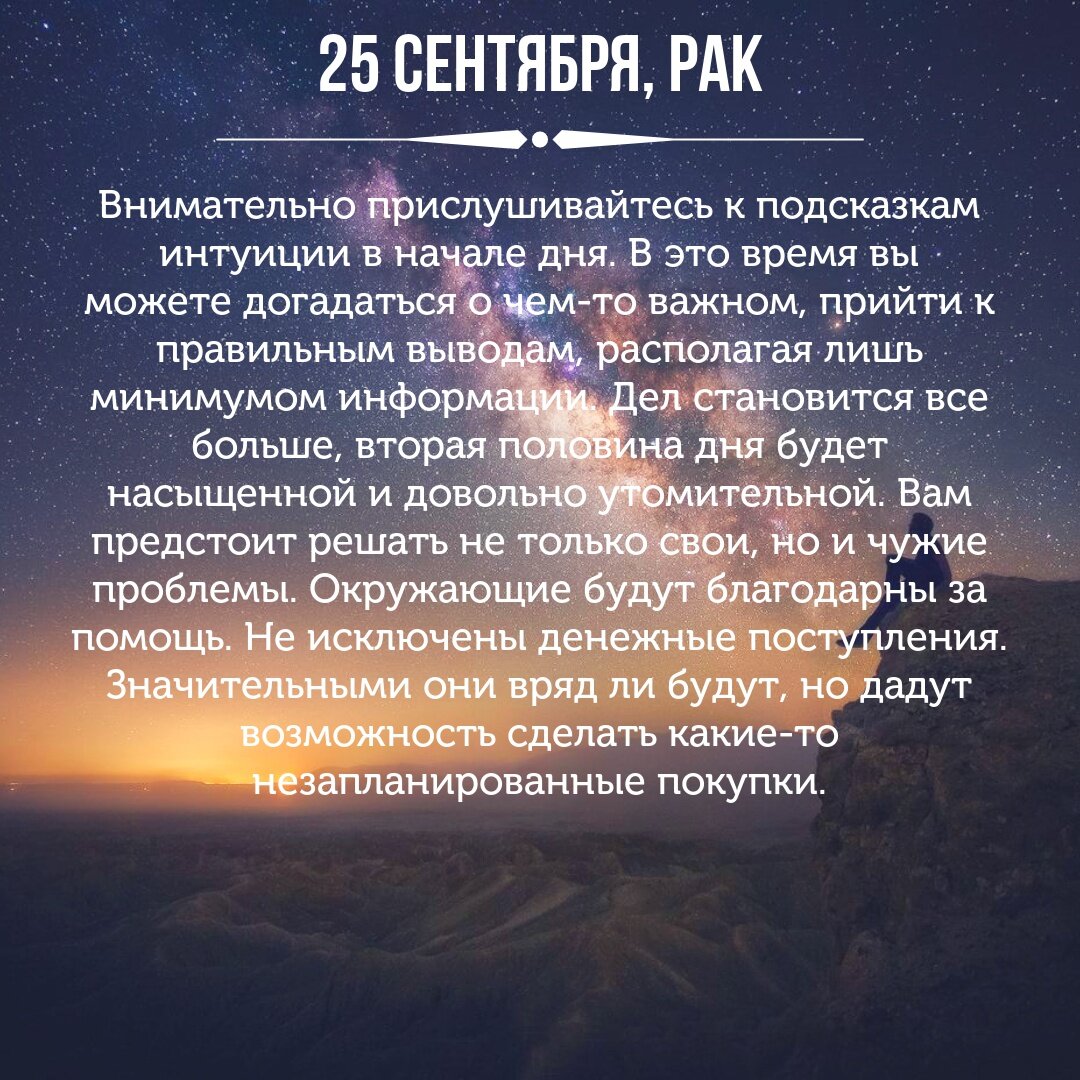 25 СЕНТЯБРЯ. РАК