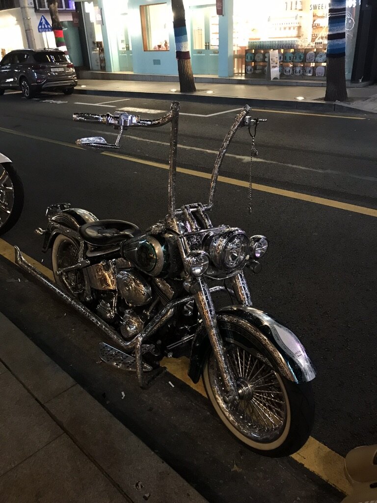Из далека кажется, что мотоцикл просто покрашен или затянут в какую-то пленку