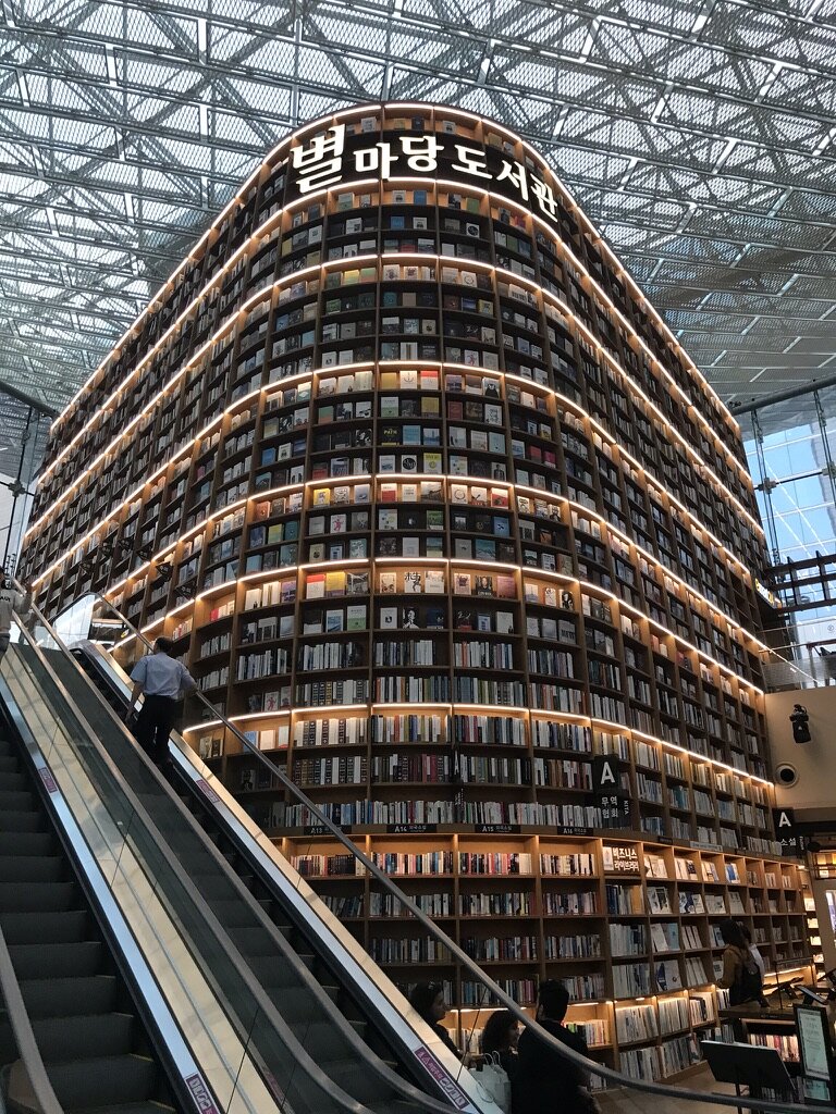 Всем привет! Раз уж родилась серия статей про Сеул, то я с радостью её продолжу. (Первые части можно прочитать подписавшись на мой канал) В Сеуле есть торговый центр и библиотека Starfield Library Гугл карты - https://goo.gl/maps/SZ7GPdqAHm5EBmSi6 Самое прикольное, что это реально действующая библиотека. Там есть зона для чтения, зона мастер-классов и тд. Это точно самая красивая библиотека, в которой я был и с радостью сделал несколько фотографий для своего инстаграма. Как давно вы были в библиотеке?