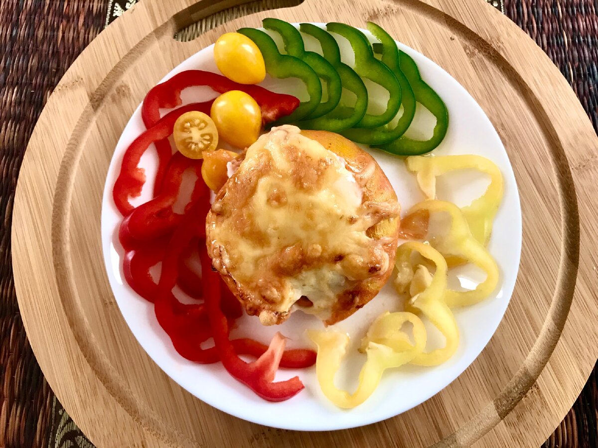 Томаты для этого блюда удобно фаршировать на силиконовой форме для кексов. В ней же и запекать.