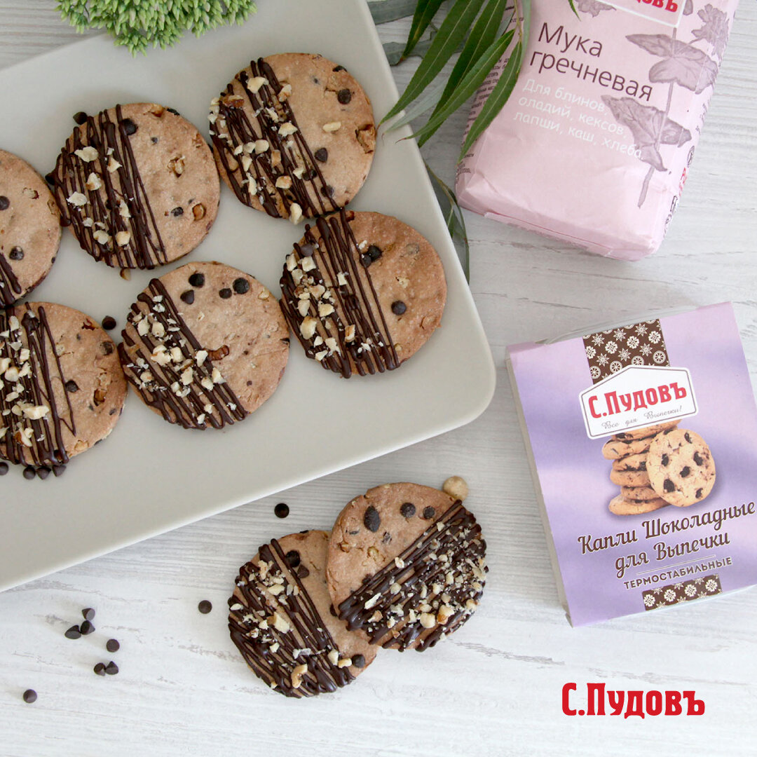 Вкусная парочка :) Сочетание гречневой муки и шоколада давно стало классикой здорового питания. Теперь это не только блины с сиропом, но и вот такое хрустящее гречневое печенье с кусочками шоколада. Дополняем орешками, завариваем свежий кофе и – здравствуй, удовольствие!
