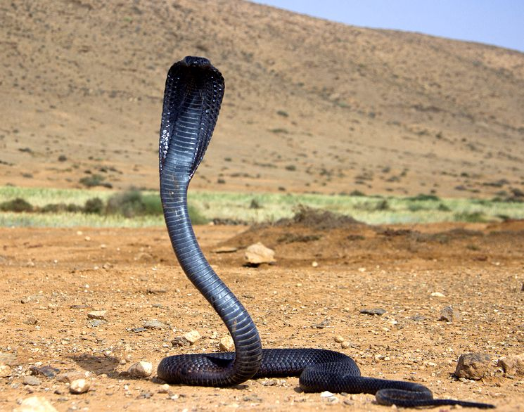 Египетская кобра — Грациозная красавица золотисто-коричневого окраса, проживающая в африканских лесах, представляет наибольшую опасность. Ее железы выделяют невероятный по силе яд, способный за пару часов убить человека. Огромный по весу слон погибает от укуса египетской кобры всего за 3 часа! Яд вызывает паралич дыхательной системы – жертва погибает от мучительного удушья.