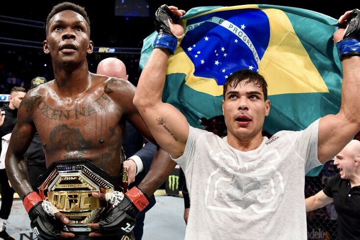 Исраэль Адесанья vs Пауло Коста (Средний вес) Новозеландский боец Исраэль Адесанья, он же “The Last Stylebender”, он же "Изи", родом из Нигерии, город Лагос. Всю свою жизнь Исраэль посвятил единоборствам, аниме и танцам. С ранних лет он начал заниматься тхэквондо, с 18 лет всерьез начал тренироваться в кикбоксинге, где проведет 80 боев, одержит 75 побед и потерпит лишь 5 поражений. Успеет Изи засветится и в боксе с рекордом 5-1 среди профессионалов. До мма Адесанья доберётся лишь в 2012 году, путь до UFC займёт у него шесть лет. Изи ещё не знал поражений в восьмиугольнике, бывали сложные поединки - как например с Веттори и Гастелумом, но в целом ещё никто не смог раскусить этот новозеландский орешек. Статистика: 19-0-0 Пауло Коста бразильский боец по прозвищу “Borrachinha”. Его дебют в профессиональном мма так же состоялся в 2012 году, а уже в 2014 году Коста принял участие на реалити шоу The Ultimate Fighter, но вылетел во многом из за недостаточной функциональной подготовки. Но