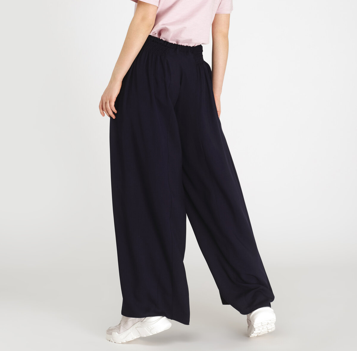 - Летние шаровары. Просторные штаны из однотонных материалов обычно изготавливаются из вискозы. Посадку можно регулировать с помощью резинок. Такие шаровары для беременных могут «сидеть» не только на животе, но и на бедрах. Модель характеризуется свободным фасоном.