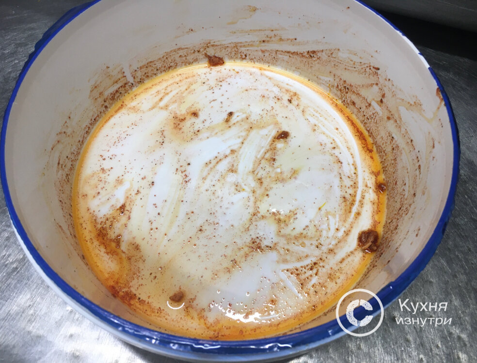 Для эксперимента я испачкал чистую ёмкость, положив туда жаренную курицу, со всем маслом, которое там было. Тщательно перемешал и добавил еще масла в грязную миску. Чтобы наверняка испачкать жиром.