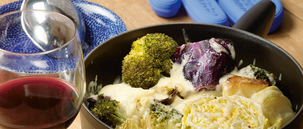 1.Отрезать от каждой кочанной капусты куски весом примерно по триста грамм. Брокколи и цветную капусту разобрать на крупные соцветия. Кольраби очистить от зеленой кожицы и разрезать на небольшие куски примерно по пять-семь сантиметров.2.В чугунном сотейнике растопить сливочное масло, добавить растительное и выложить сначала кольраби, бело- и краснокочанную капусту. Томить на медленном огне под крышкой пять-семь минут. Потом выложить цветную капусту, савойскую и брокколи и томить еще пять минут под крышкой.3.Потом положить шмат пекинской капусты, веточки розмарина, посолить, поперчить, посыпать сахаром (пары щепоток хватит). Накрыть крышкой и томить еше десять минут.4.Открыть крышку, полить содержимое сотейника лимонным соком и поставить на десять минут в духовку, разогретую до 200 градусов.5.Через десять минут достать сотейник, вынуть веточки розмарина, посыпать тертым сыром и вернуть в духовку — до тех пор, пока сыр не расплавится и не начнет побулькивать. Тогда вынуть и подавать к столу.