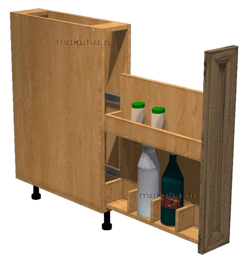 Каждая хозяйка хотела бы иметь такую штуку в своей кухне. Выдвинул и все как на ладони, это не то, как выгребать из самого дальнего угла тумбы, пока доберешься до нужной вещи, нужно перелопатить все залежи. Все преимущества, так сказать налицо.