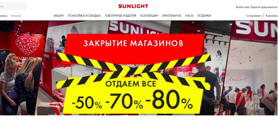 По данным ведомства, дело о нарушении закона о рекламе было возбуждено по заявлению местной жительницы, которой на телефон пришло сообщение от Sunlight об уходе с рынка и бесплатной раздаче украшений, а также о скидках до 80 процентов, при этом магазин продолжал работать.
