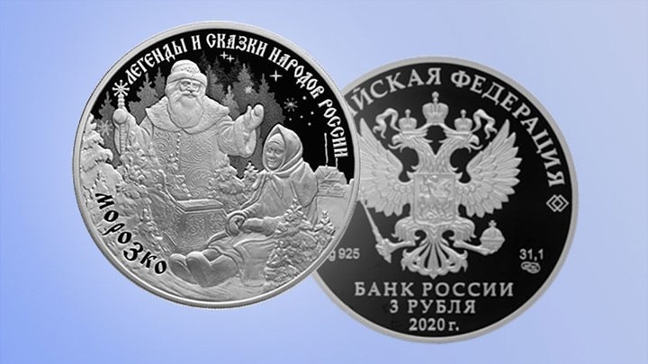 28 сентября он пустит в обращение памятную серебряную монету "Морозко" из серии "Легенды и сказки народов России". Она будет номиналом 3 рубля, тираж составит 7 тысяч штук.