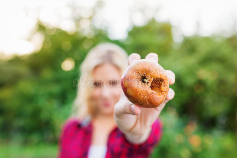 Плодовая гниль начинается с небольшого пятна на яблоке, потом оно все гниет. Через 7-10 дней образуются комидии, они разносятся ветром, дождем или насекомыми и заражают другие