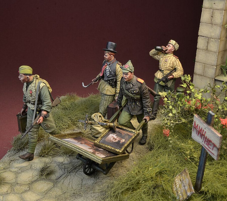 Польская компания "D-Day Miniature Studio" выпустила новый набор солдатиков в масштабе 1:35, который называется "Red Storm over Europe". Компания специализируется на изготовлении солдатиков и игрушечной военной техники разных стран. Новый набор "Red Storm over Europe", который переводится как "Красная буря над Европой" изображает советских военнослужащих в виде... мародеров. Заметно, что военнослужащие везут на тачке картины, вещи, несут чемоданы с вещами один из них одел шляпу. Традиционно русскому народу приписывают пьянство, видно как один солдат глотает из бутылки алкоголь. На игрушку обратил внимание российский журналист Евгений Поддубный, который в личном telegram-канале написал следующее: «Четыре фигурки, советские солдаты, освободители Европы от фашизма, представлены компанией в виде мародеров, мол, злые советские варвары грабят добрых европейцев. Пропаганда, она такая. Она даже в фигурках». Следует заметить, что сайт компании-производителя находится на польском хостинге, раз