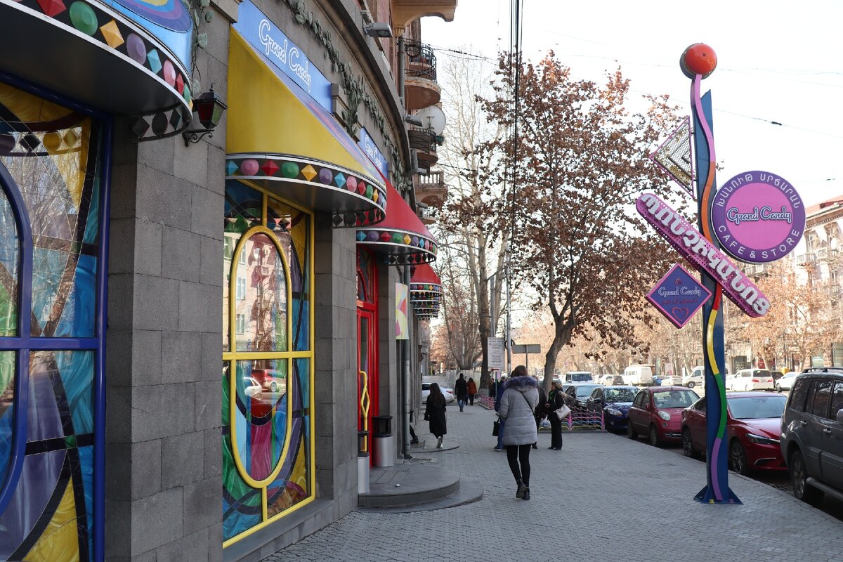 Здравствуйте, дорогие читатели канала «Соло-путешествия»! Во время поездки в Армению я хотела попробовать побольше блюд национальной кухни. И в части горячих блюд мне это удалось в полной мере, я уже писала об этом. Но вот с десертами в армянской кухне не очень. Пахлаву я попробовала, на мой взгляд, она сильно уступает турецкой и я в нее не влюбилась. В Ереване много кондитерских и кофеен, где подают немало тортов и пирожных, но хотелось чего-то аутентичного. И это оказались пончики. В Ереване есть очень популярная кондитерская фабрика «Grand Candy». Они выпускают множество конфет и наборов с видами Армении, которые отлично подходят для сувениров. А при одном из магазинов работает пончиковая. В Ереван я приехала после поездки в Санкт-Петербург и во мне еще жило воспоминание о питерских пышках. Поэтому я в предвкушении вкусноты пошла в ереванское кафе, чтобы попробовать местные пышки. Но на кассе меня сразу одернули: это пончики, сурово сказала девушка. Ну, пончики, так пончики. Кафе
