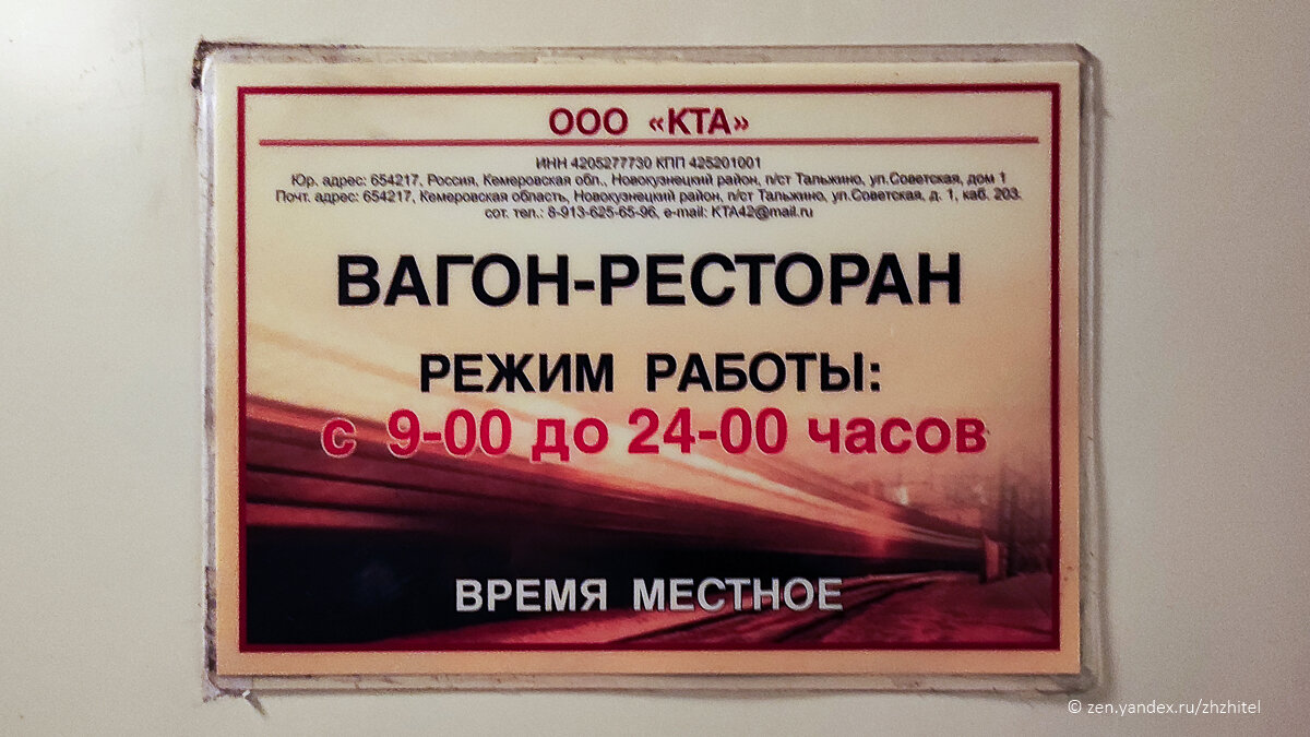 Решили зайти вечером в вагон-ресторан. Думаю, многим интересно, что там предлагают и по каким ценам. Предлагаю небольшой обзор. Речь пойдет о вагоне-ресторане в поезде «Новосибирск — Владивосток». Ресторан работает с 9 утра до полуночи по местному времени. Время в поездке меняется, поэтому так и написали. Народу в вагоне-ресторане было немного. Мы зашли в районе 9 часов вечера. Давайте полистаем меню. Начнем с завтраков. На завтрак яичница с помидорами и сыром и кофе. Подается с гренкой. Стоит это 215 рублей. Бизнес-ланч включает в себя салат из свеклы с сыром, щи, сосиску, макароны, хлеб, чай. Стоит 400 рублей. Можно заказывать блюда по меню. Супы от 160 рублей за суп-лапшу до 489 рублей за «Царскую» уху. Самый дешевый — борщ с картофелем «Студенческий» за 121 рубль, но он вегетарианский. Салаты и закуски. Ассорти рыбное — 889 рублей за 200 грамм рыбы, семга 699 рублей за 100 грамм. Салаты от 144 рублей и выше. С основными блюдами нужно быть внимательными. Есть порционные, по 100 гр