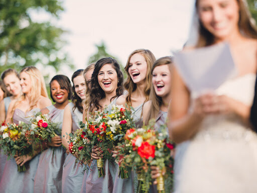 На заметку: неформальный стиль подразумевает неформальный подход, поэтому стилисты советуют активнее использовать интересные детали, типа временных татуировок или одинаковых причёсок, а также пофантазировать с аксессуарами. При ограниченном свадебном бюджете, когда нет денег на пошив специальных нарядов для всей свиты молодожёнов, именно аксессуары могут выступить в роли палочки-выручалочки и создадут единую концепцию.