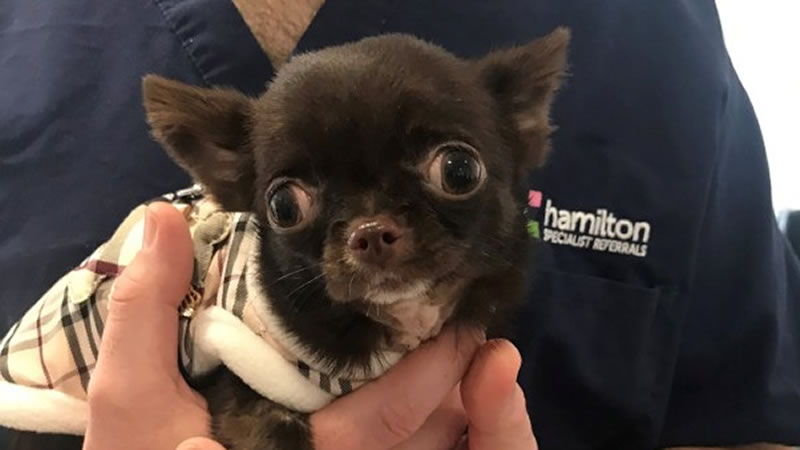 Уникальный случай произошёл в английском городе Хай-Уиком. Пёсик породы чихуахуа по кличке Пинг был частично парализован с рождения: шейные позвонки пережимали собаке спинной мозг из-за врождённой деформации.
