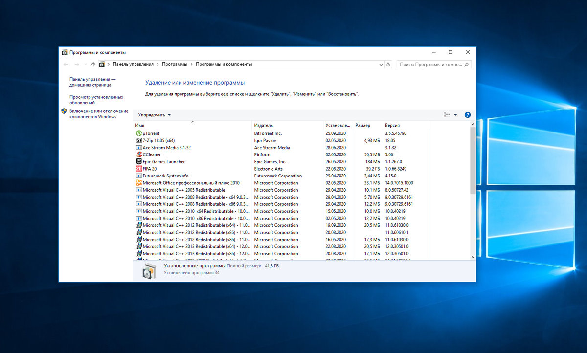 - Удаление ненужных программ. Несколько месяцев назад установили программу или игру и с тех пор почти не запускали? Или не заметили, как вместе с нужным софтом установилось море рекламных приложений? Такое лучше сразу удалять: это и освободит место на диске, и потенциально снизит нагрузку на систему — ведь неиспользуемая программа, например, могла попасть в автозапуск и каждый день открываться с включением ноутбука, «питаясь» его ресурсами. Словом, необходимо выполнить проверку и избавиться от всего лишнего софта. Сделать это можно, открыв «Пуск» и выбрав пункт «Программы и компоненты».