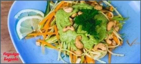 Зеленый салат с кешью соусом