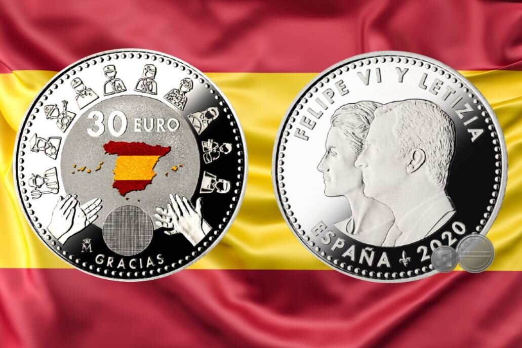 Королевский монетный двор предоставил общественности серебряную монету номинальной стоимостью 30 евро, выпущенную в честь всех, кто продолжал выполнять свои необходимые задачи во время пандемии.