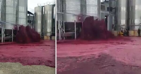 Испанскую винодельню Вильямалеа затопило 50 тысячами литров красного вина, пишет LAD Bible. Отмечается, что вино разлилось из цистерны, используемой для хранения напитка. На кадрах видно, как потоки вина вытекают из бака, заливая территорию вокруг завода. Пока не уточняется, что повредило цистерну