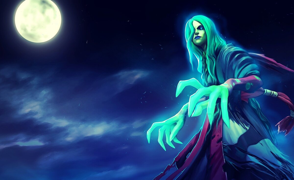 Она мягко опустилась у подоконника и с хрустом размяла шею. Ксюша перестала дышать и распахнутыми глазами рассматривала ведьму. Волосы ее были седые и закрывали почти все лицо, кожа бледно-зеленая, светящаяся мертвенным сиянием. Сквозь челку видно было белый глаз и посиневшие губы. Платье, бывшее некогда роскошным, теперь было разодрано во многих местах, лоскуты полуистлевшей бордовой ткани шевелил сквозняк.