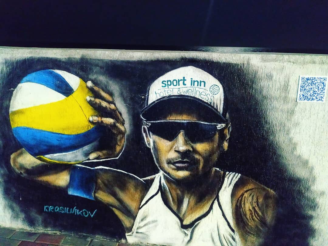 К сожалению в Москве беспощадно закрашивают граффити. Всё это мазня, говорят чиновники. Надо будет городу нарисуют новое. А вот на набережной в Адлере у Олимпийского парка граффити используют, как рекламу. Отель Sport Inn вероятно стал идейным вдохновителем сочных рисунков. К сожалению не смогла прочитать QR code. Приложение отказывалось считывать квадратики. Но яркие граффити впечатлили. Впрочем, там и до этого появлялись различные граффити и не всегда в формате рекламы. А как вы относитесь к настенной живописи? На ваш взгляд это мазня или искусство?