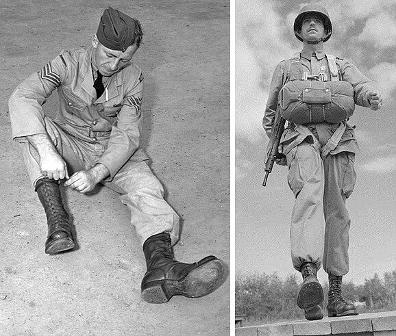 Наравне с другой амуницией парашютистов, остро стал вопрос специфической обуви, которая бы полностью соответствовала боевым задачам десантников. На тот момент Пехотному департаменту США пришлось сильно "чесать репу". Мучительных 2 года изобретений и испытаний, в ходе которых испытуемые парашютисты ломали ноги, получали вывихи и растяжения, путались ногами в стропах парашютов и спотыкались об выходные люки и много других прелестей...