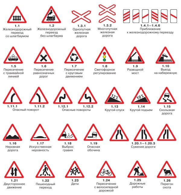 Предупреждающие знаки информируют водителей о приближении к опасному участку дороги, движение по которому требует принятия мер, соответствующих обстановке. Предупреждающие дорожные знаки: история и современность Подобие предупреждающих об опасности путевых сигналов существовало даже в тот период, когда не было транспортных средств. С помощью камней или специальных надрезов на деревьях люди указывали друг другу путь или отмечали опасные места. В связи с появлением автомобилей появилось больше опасностей, и, соответственно, появилась необходимость в большом количестве условных обозначений. Привычный дизайн предупреждающего дорожного щита: черное изображение на белом фоне, обрамлённое красным треугольником. У временных вариантов фон, как правило, жёлтого цвета. Эти предупреждающие дорожные знаки ничего не запрещают. За невыполнение условий, указанных на сигнальной табличке, водитель не получит штраф. Такие обозначения служат исключительно для обеспечения безопасности человека за рулём. К