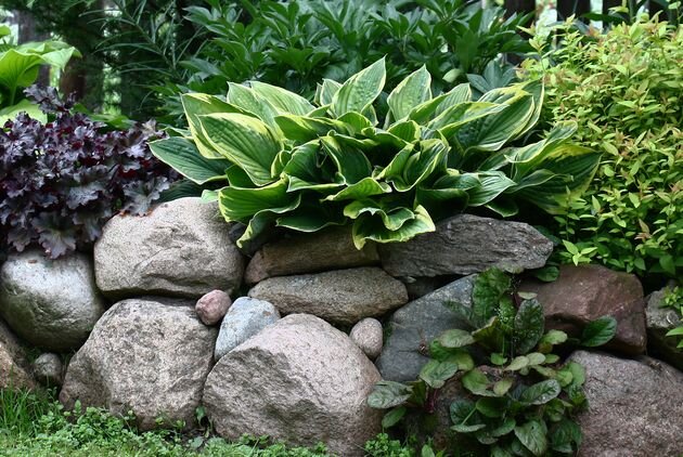 Великолепный кандидат в цветник, куда редко заглядывает луч солнца. Хоста, как и купена, относится к семейству спаржевые. У нее привлекательны не столько сиренево-белые соцветия (цветение длится две недели), сколько листья красивой формы. У многих видов и сортов листовая пластина украшена белыми или желтыми полосами. К примеру, у хосты Зибольда они голубовато-зеленые, слегка морщинистые.