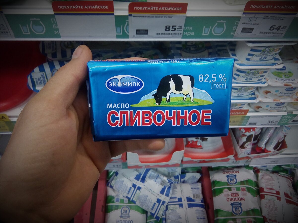 В магазине "Магнит" очень часто можно найти товары по хорошей скидке и в очередном походе в магазин, я на полке холодильника обнаружил сливочное масло по скидке и стоило оно 76 рублей за 180 грамм. И как мне известно, из жизненного опыта, что хорошее сливочное масло должно иметь жирность 82,5%, именно такое сливочное масло считается самым лучшим по качеству среди остальных.
