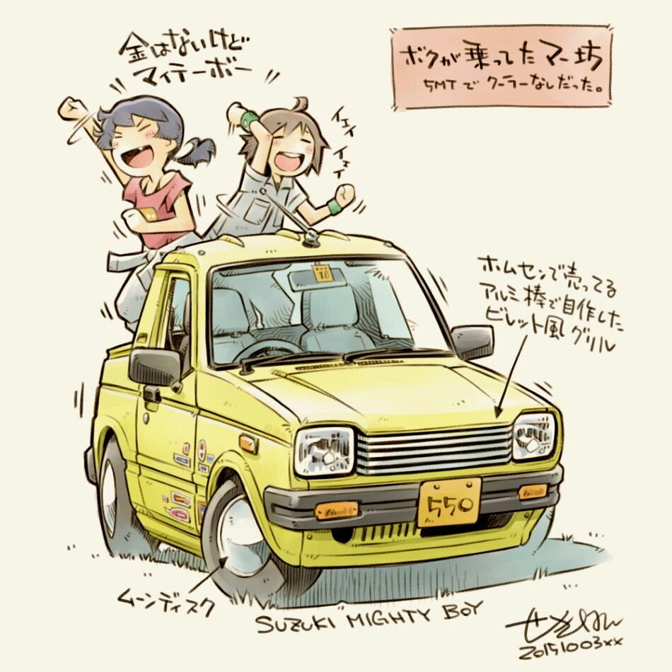 Один из японских дизайнеров регулярно публикует интересные рисунки автомобилей, выполненые в мультяшном стиле. Большая часть машин на этих работах — конечно, японского происхождения, но изредка встречаются и «иномарки». Например, британский Mini, американский Pontiac и даже российская «Нива».
