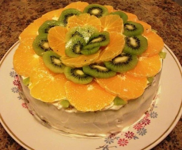 Поскольку мы с вами печем торт на скорую руку, никакие правила в его приготовлении не действуют. Все процессы мы запускаем в той очередности, какая удобна именно нам. Единственный совет: разрыхлитель смешиваем с тестом, а яйца взбиваем сахаром при помощи миксера. Все остальные компоненты смешиваем друг с другом, чтобы получить в меру жидкое тесто. Прогреваем духовой шкаф до двухсот градусов и ставим торт в круглой форме запекаться до полной готовности. После вынимаем, даем остыть и разрезаем корж на две половинки. Обильно промазываем оба коржа кремом, сверху украшаем тоже – как заблагорассудится. Можно тертым шоколадом или вареньем, или свежими ягодами и фруктами, или кокосовой стружкой, или глазурью.