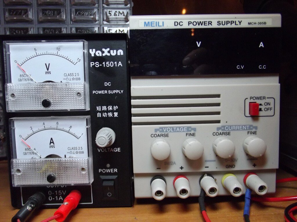 У каждого радиолюбителя, будь он чайник или даже профессионал, на краю стола должен чинно и важно лежать блок питания. У меня на столе в данный момент лежат два блока питания. Один выдает максимум 15 Вольт и 1 Ампер (черный стрелочный), а другой 30 Вольт, 5 Ампер (справа):