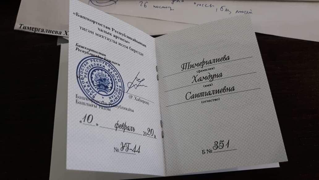 Хамдуна Тимергалиева, уроженка деревни Котляр Бураевского района Башкирии, выступала на татарском языке и ещё в 1991 году получила звание народной артистки республики Татарстан. Никаких официальных званий в родном Башкортостане у неё не было до последнего времени.