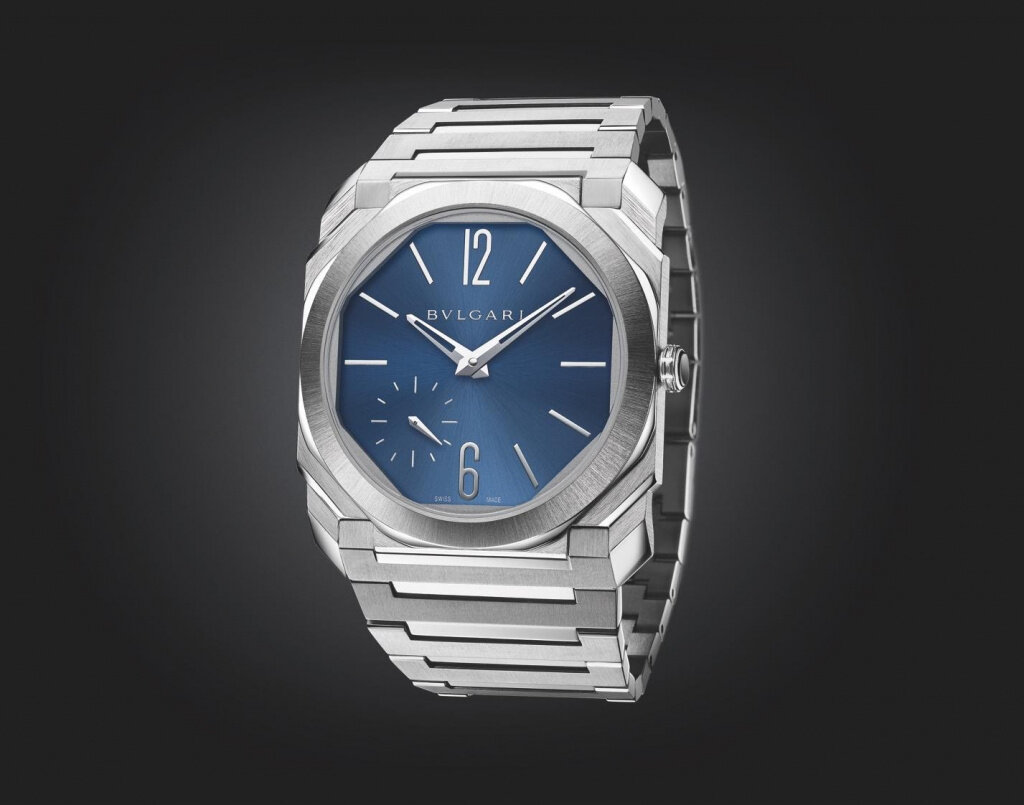 Версию этих часов с черным циферблатом можно было увидеть в январе на выставке LVMH Dubai Watch Week. Корпус Octo Finissimo диаметром 40 мм стал немного толще (6,4 мм), зато его водонепроницаемость увеличилась с 30 до 100 метров, внутри установлен все тот же супертонкий автоматический калибр BVL 138 с микроротором и запасом хода 60 часов. Выгодно играет комбинация полированных и шлифованных граней, вес умеренный, цена 12 500 евро.