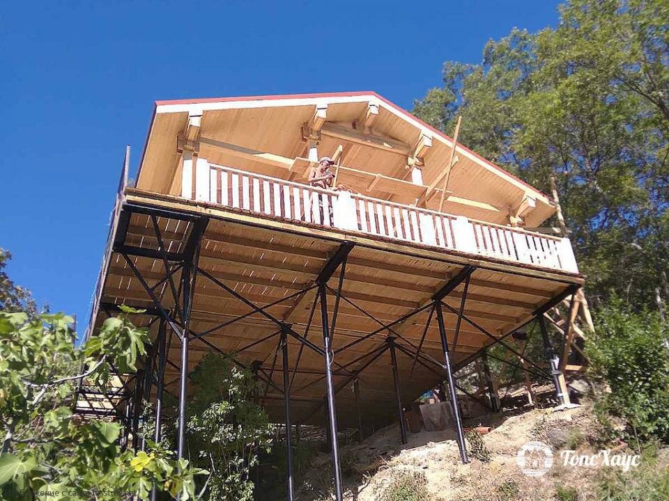 Здесь ситуация усложнилась неудобным расположением - прямо над обрывом. Бесспорно, вид из дома будет открываться необычайно красивый: бескрайнее море и изменчивое небо. Однако, строить в таких условиях необычайно тяжело: пришлось устанавливать сваи и укреплять